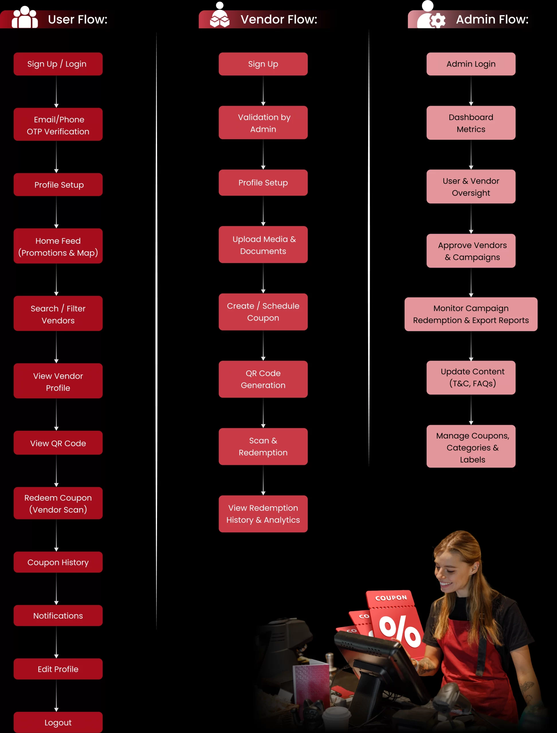 The project focused on building a secure and scalable platform for digital payments, coupon programs, and vendor management, while keeping the experience simple for all users. To achieve this, the following key objectives were defined: